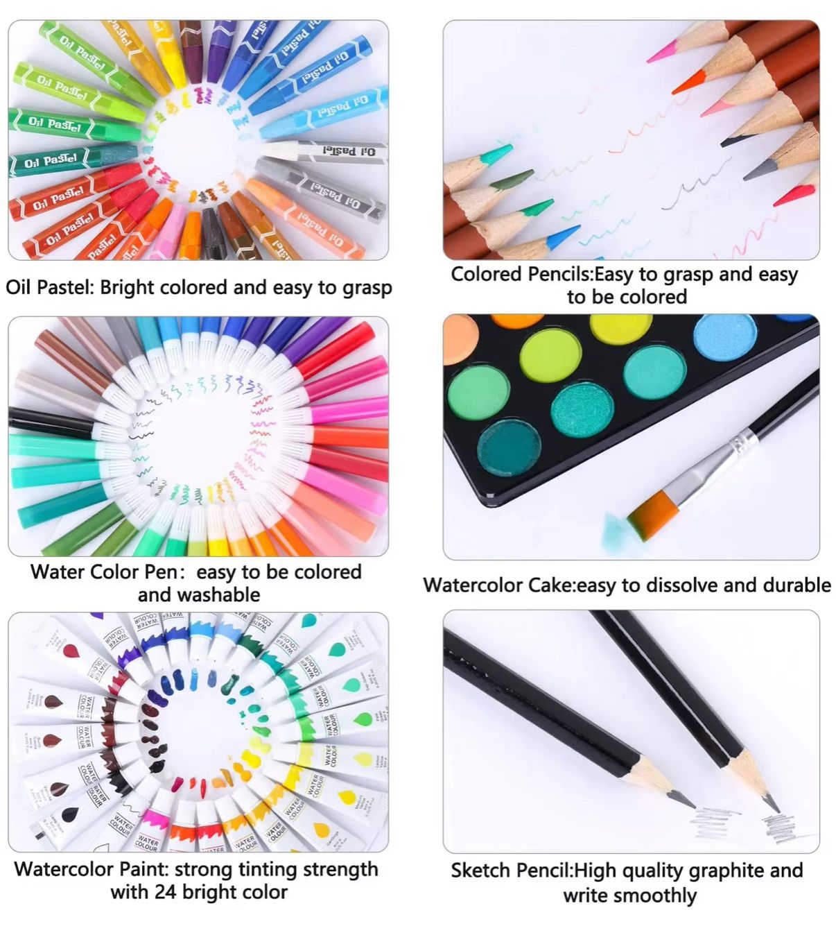 - Complete Art Set: This set includes 145 pieces of aluminum kids oil pastel crayons, markers, watercolor cakes, and drawing art brushes. Perfect for young artists. 🎨