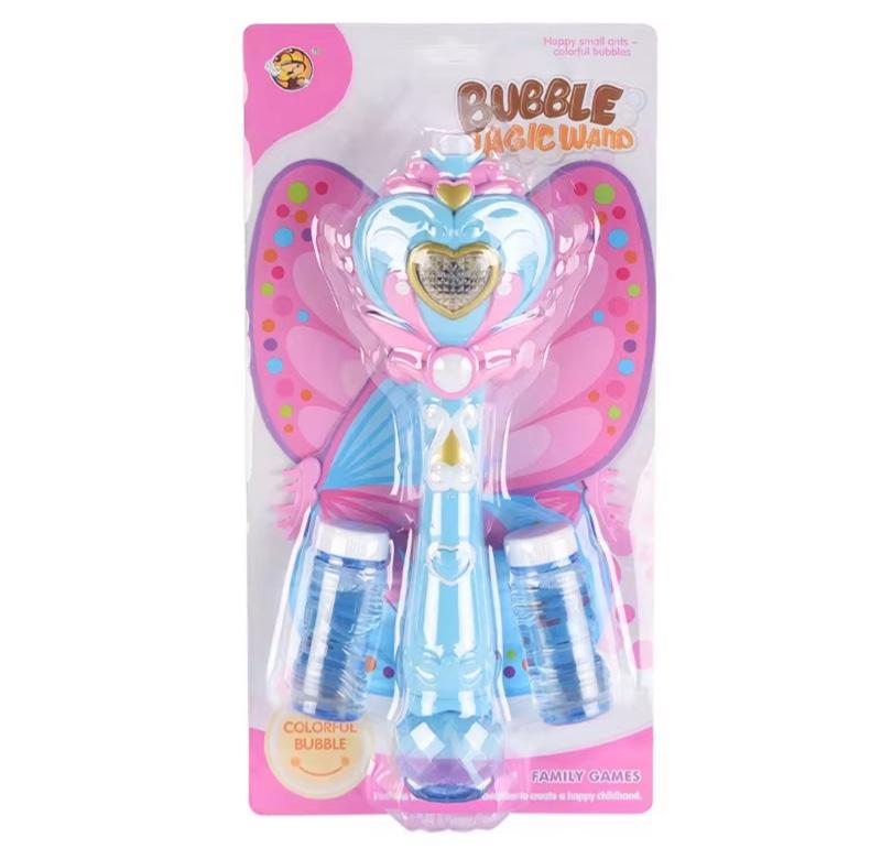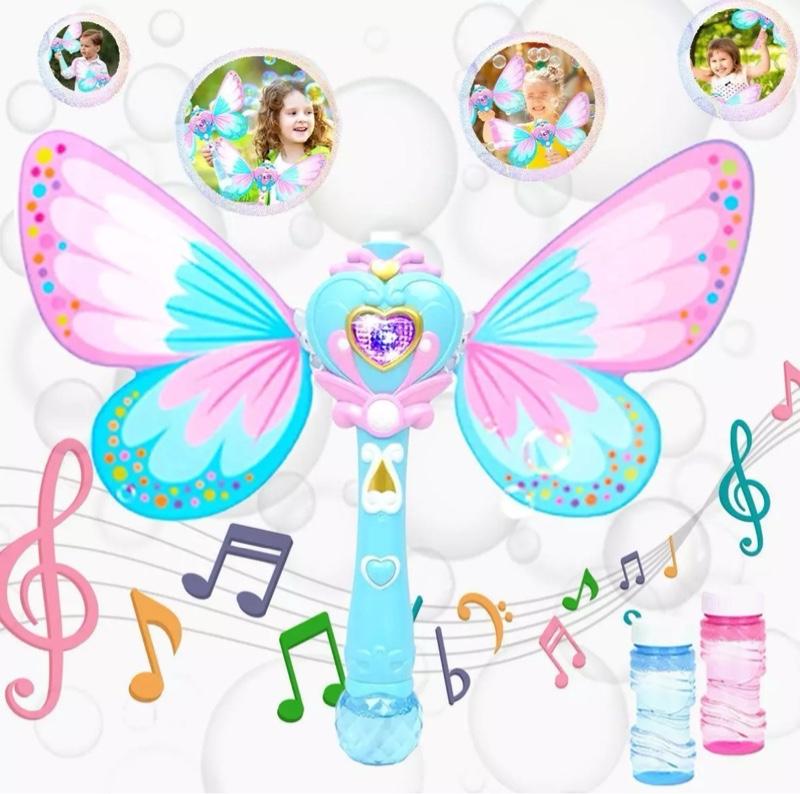 Introducing the Butterfly Bubble Wand Blower Machine with Magic Wings Music and Lights, the perfect outdoor fun for kids and toddlers. This automatic bubble maker toy is designed to make creating bubbles a breeze, with its easy-to-use feature that allows for quick and efficient bubble generation.