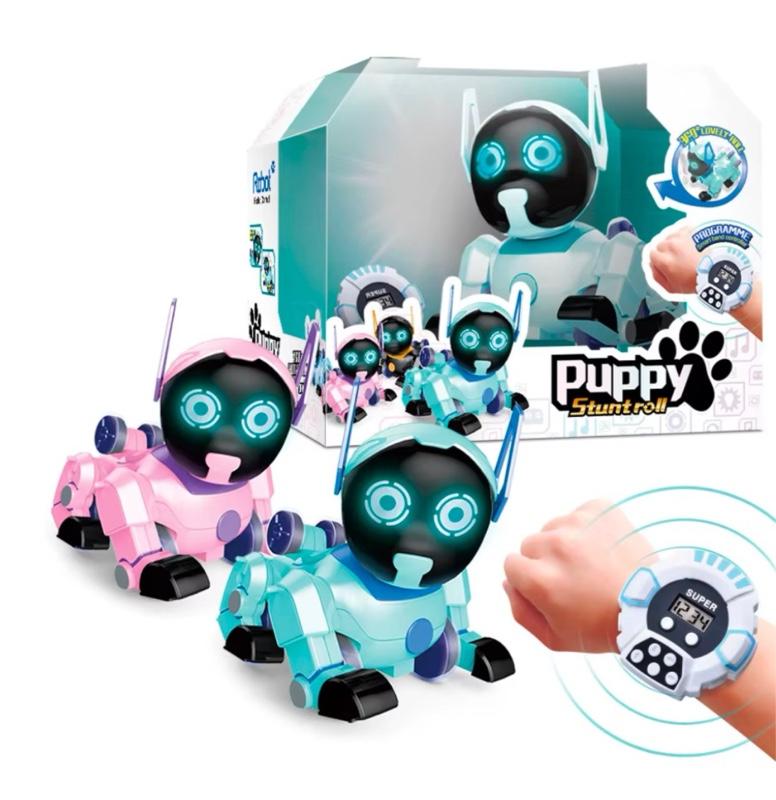 Introducing the new Watch Control Stunt Roll Puppy Robot Toy, a smart and intelligent pet toy that is perfect for kids and toddlers. This toy is designed to be a smart intelligent dog that can perform stunts and flip, making it a fun and exciting toy for children to play with.